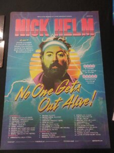 Nick Helm reached the halfway point of his national ‘No One Gets Out Alive’ tour (a name he admits to having struggled to sell as well as his last, the significantly more positively titled ‘Nick Helm’s Super Fun Good Time Show’) at The Stand in Newcastle on November 4 and his quality remains clear to see.