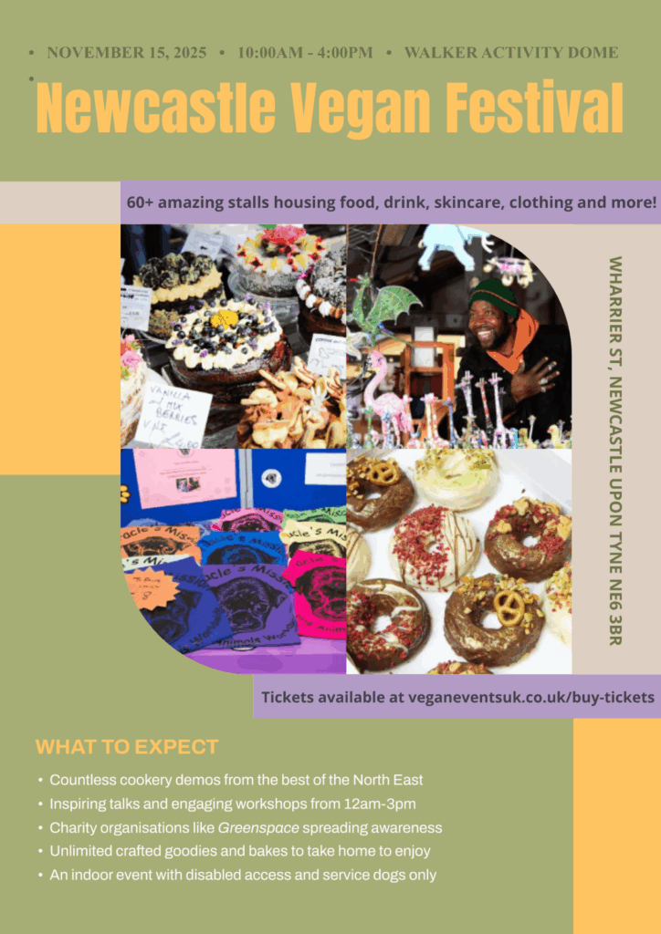 An Infographic Poster for Vegan Events UK’s Newcastle Vegan Festival 2025