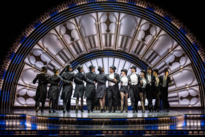 Top Hat starts Jerry’s last performance in New York before travelling to do a show in London which is a large tap number to Puttin’ on the Ritz, which set up the feel for the rest of the show. The producer, Horace Hadwick (James Hume) takes Jerry to London for an opening night then to Italy to meet his wife, Madge Hadwick (Sally Ann Triplett) and her friend, Dale who is also there with her designer, Alberto Beddini (Alex Gibson Giorgio). London is also where we meet Bates (James Clyde) who is Mr Hadwick’s valet. Bates and Mr Beddini were the funniest characters, instantly making the audience laugh.