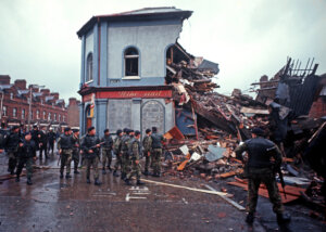 BELFAST, NORTHERN IRELAND – OCTOBER 1974. Loyalist Bar, blown up by the Irish Republican Army during The Troubles.