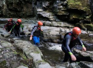 Gorge walking is an adventurous outdoor activity which involves, hiking, climbing and swimming through river gorges which often requires participants to navigate rocky terrain.