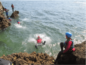 Coasteering is an adventurous, guided outdoor activity which engages multiple muscle groups through activities like swimming, climbing, and scrambling, this helps tone muscles and build endurance.