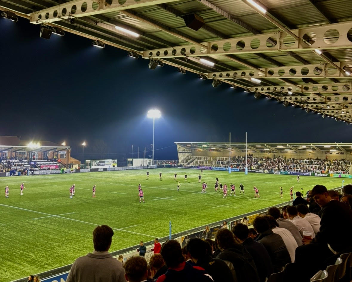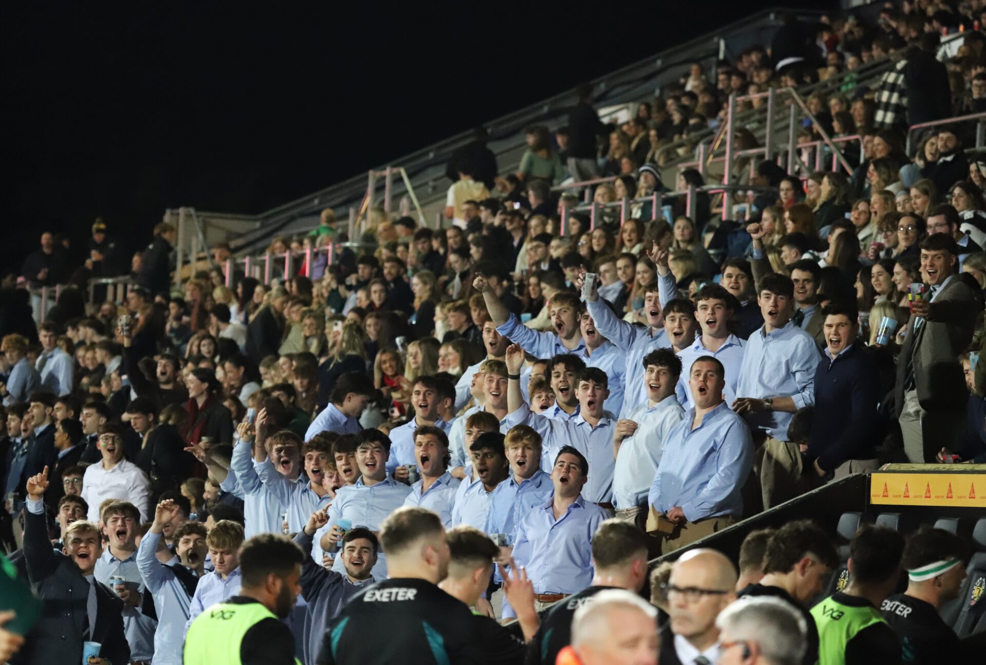 Exeter University supporters cheering against Durham at Sandy Park – Leia West
