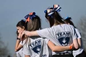 Two Sunderland athletes arms around each other
