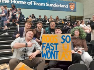 The Sunderland University futsal team sit in the locker room enjoying a moment of calm before the storm. They are used to playing in front of sparse crowds, no more than a few friends or family watching. It’s hard to fully contain their nerves. They know what is coming.