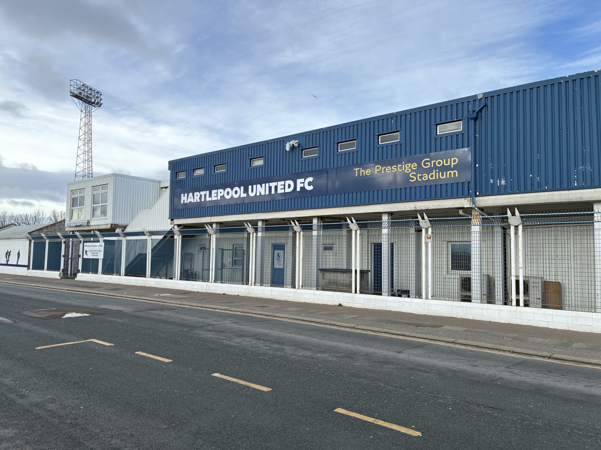 Outside of The Prestige Group Stadium, home of Hartlepool United. Credit: Harry Johnson-Clark